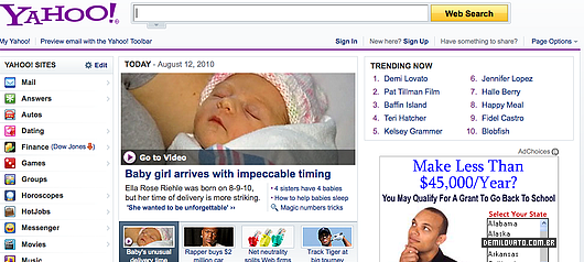 Demi Lovato ficou em primeiro lugar nos Trending Topics (assuntos mais falados) do site Yahoo!. Vejam abaixo: